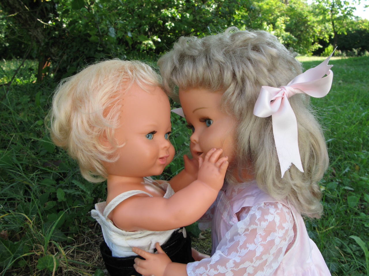 Les poupons : un poupon boudeur de la Ideal Toy Company, la jumelle du poupon Lucas et le poupon Lucas de Bella.